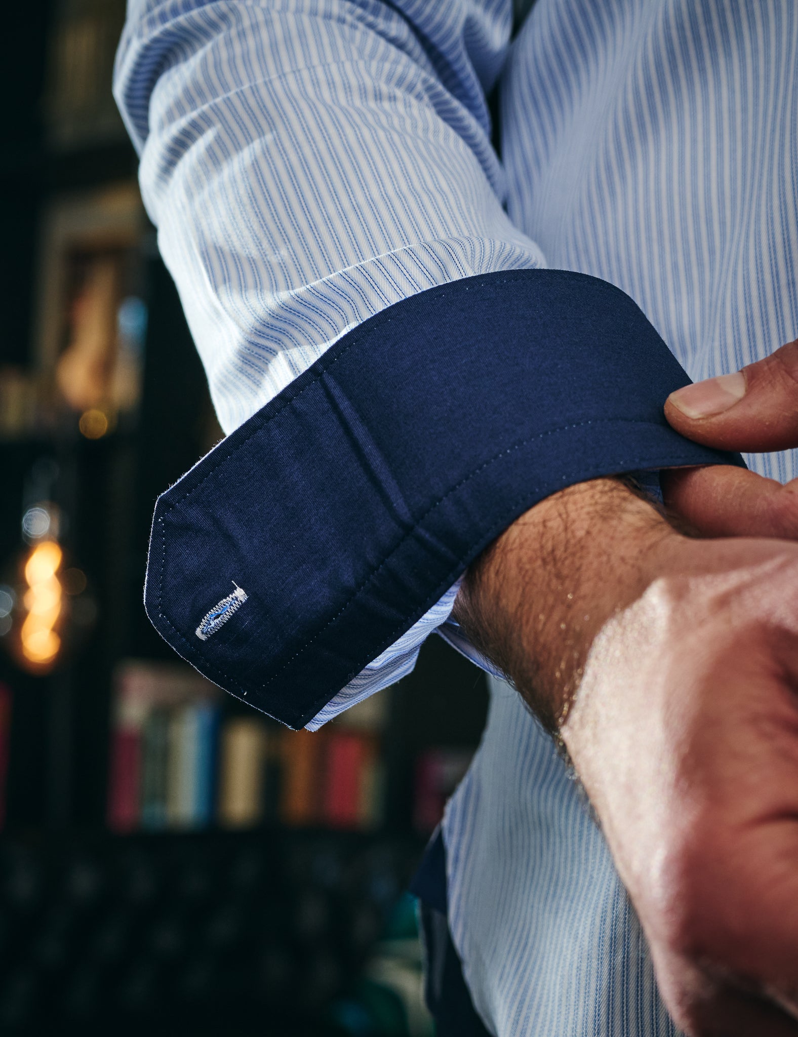 - Col classique avec intérieur contrasté marine