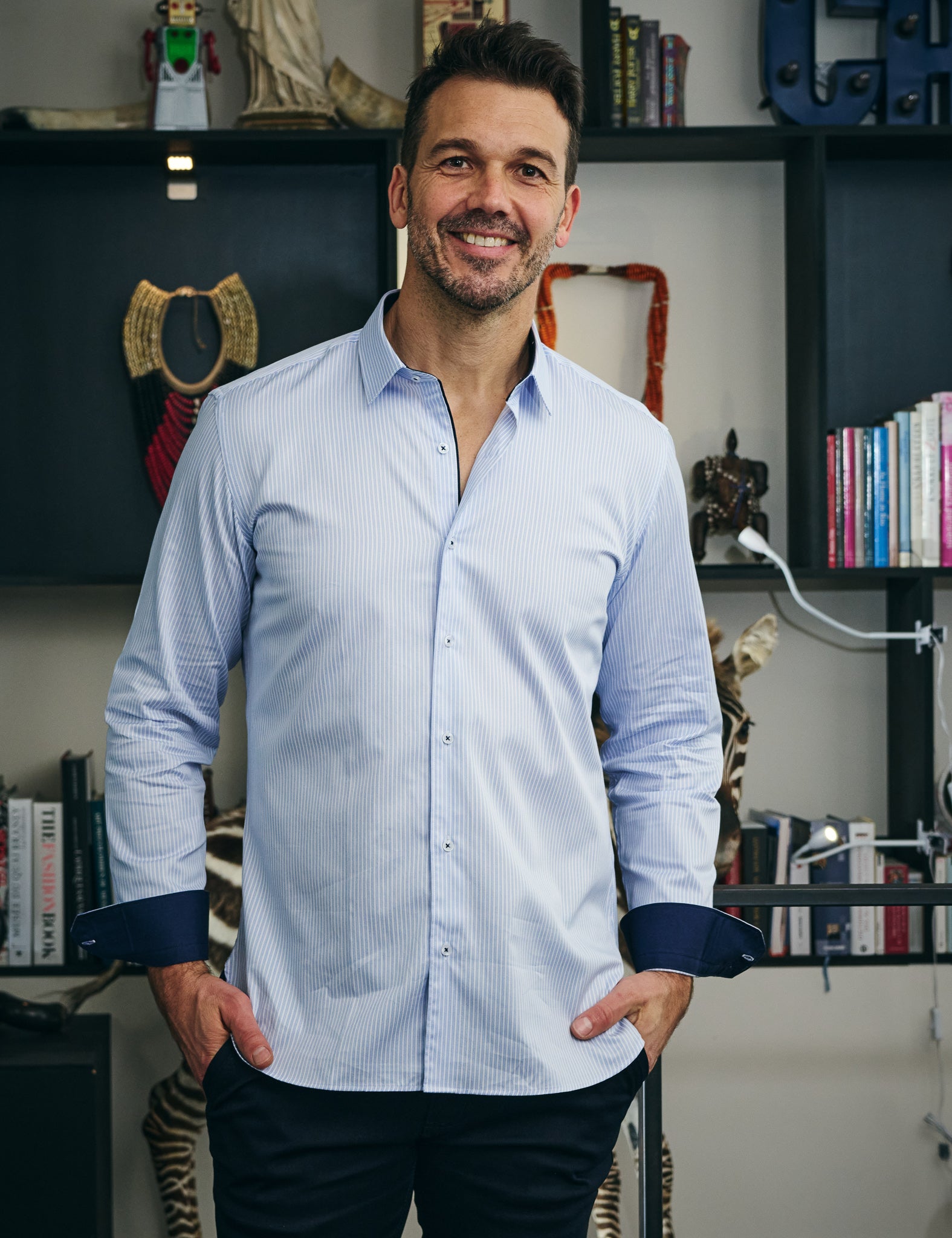 La chemise Ashton à rayure ciel s'impose comme une pièce élégante et décontractée du vestiaire masculin.