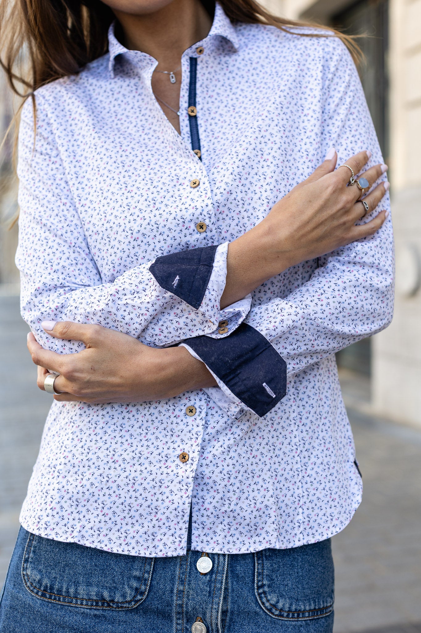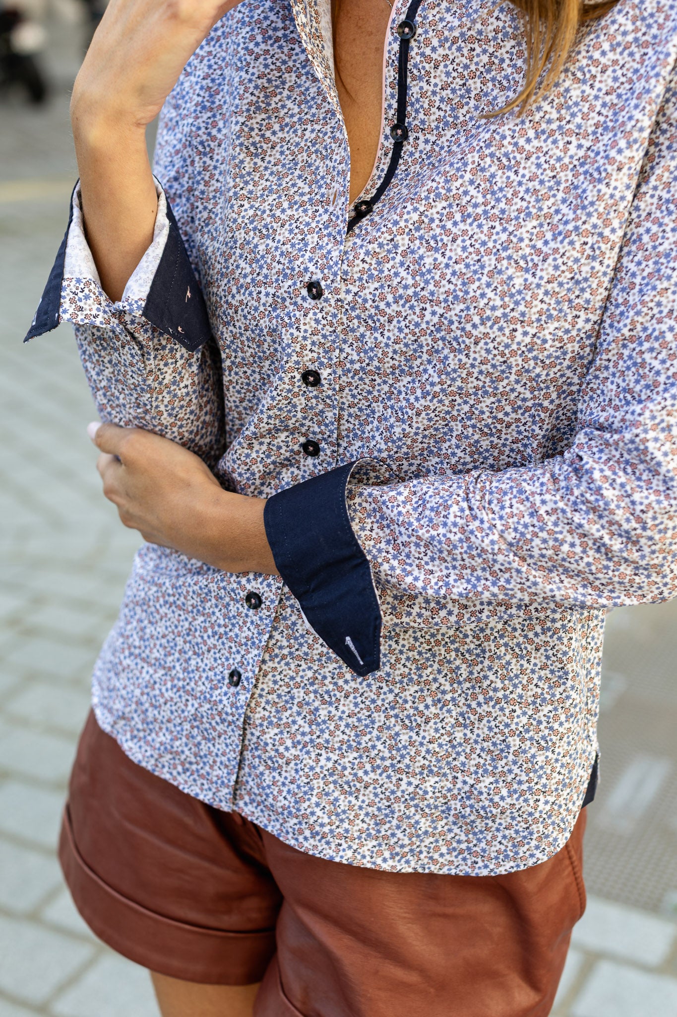 Chemisier micro fleuri doublure marine
