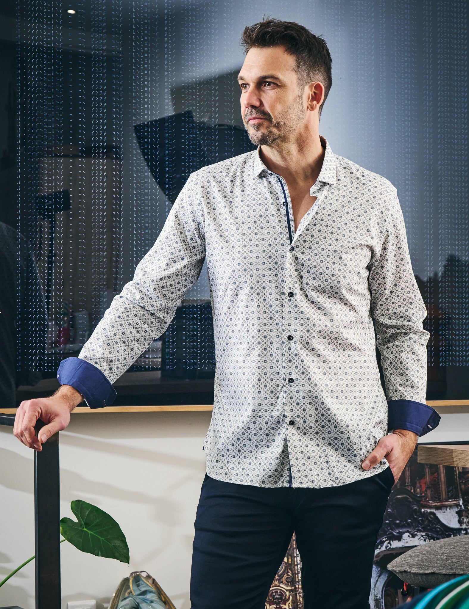 Le détail qui fait toute la différence : une chemise graphique et raffinée, parfaite pour un style moderne et affirmé.