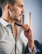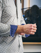 La chemise Ashton à motif doublure beige/marine s'impose comme une pièce élégante et moderne du vestiaire masculin.