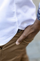 Polyvalente et facile à porter, cette chemise blanche élégante pour homme s’adapte parfaitement à une tenue professionnelle avec costume, mais aussi à un look casual chic avec un chino ou un jean.